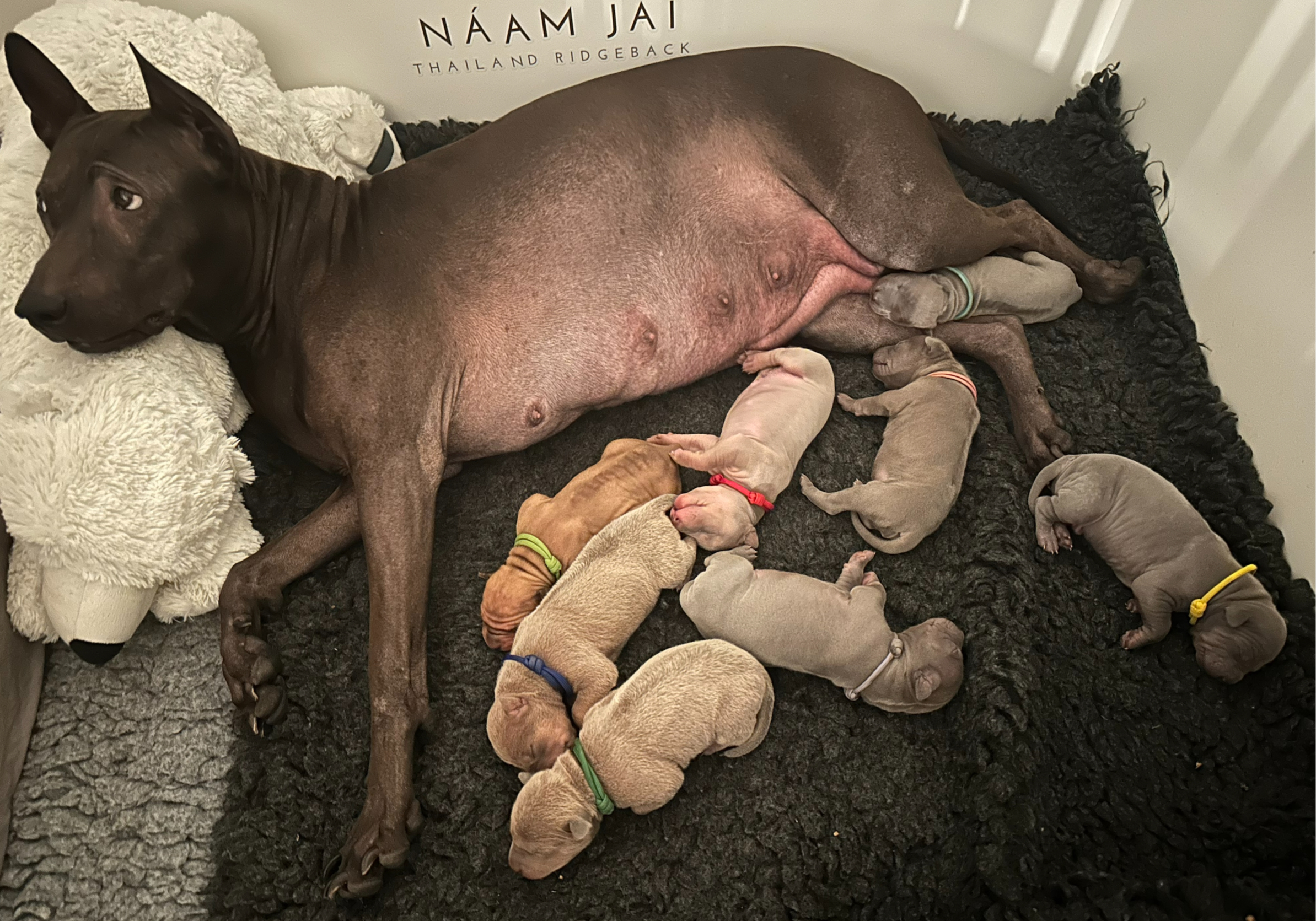 In der Nacht vom 27. auf den 28. November 2023 hat uns Ayra in einer unkomplizierten Geburt 8 kleine Ridgeträger geschenkt. Der Mamma und den Welpen geht es prima. Die Kleinen sind sehr agil, gesund und alle soweit korrekt.